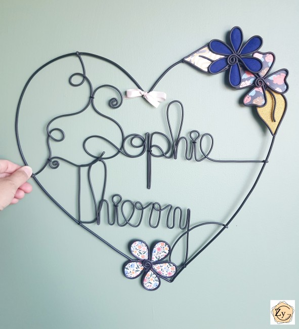 * Décoration murale personnalisée avec 2 prénoms et fleurs aux choix.